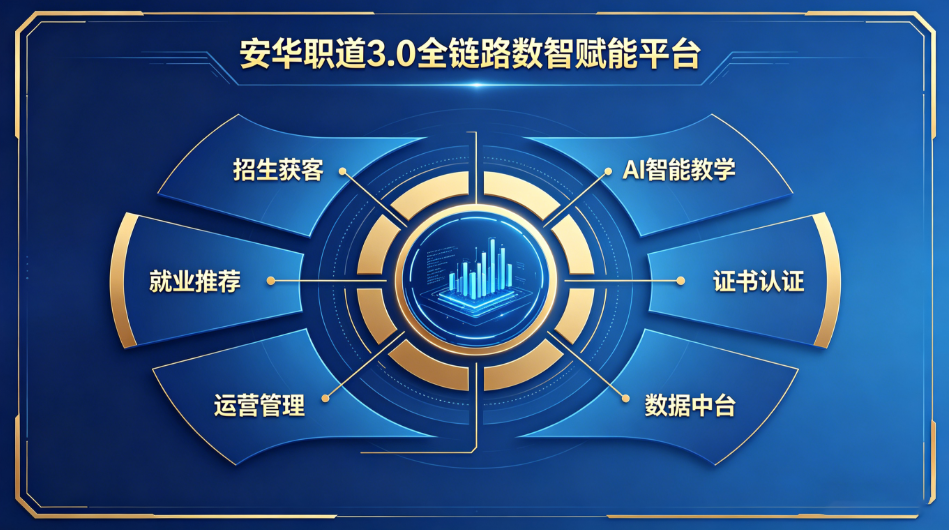 大会迎来重磅环节 ——安华职道 3.0 新职业教育数智赋能平台正式发布 。作为国内领先的全链路职教数字化平台,安华职道 3.0 集招生获客、AI 智能教学、证书认证、就业推荐、运营管理、数据中台 于一体,全新升级 AI 教学、大数据获客、合规办学系统、运营商专属后台等核心功能,一站式解决机构 “招生难、教学难、就业难、运营难、合规难” 五大痛点。