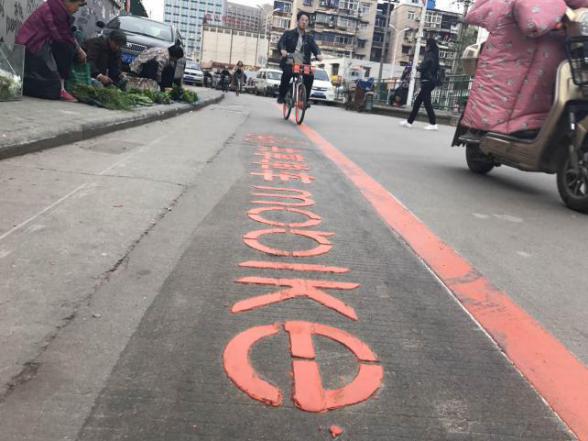 4月1日,有市民路过武汉市南湖片区的平安路铁路桥涵洞,发现马路靠右侧新画出了一条橙色的车道,一直延伸到雄楚大道,道内还写有“共享单车”的字样,不时有人骑着电动车以及橙、黄、白,各色共享单车在该车道里通行。原来这是武汉市交管部门与摩拜单车共同合作施划的全国首条摩拜车道。