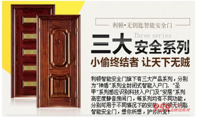 为了较好的满足消费者对于防盗门的不同需求,利顿智能防盗门旗下有三大产品系列,分别为神盾系列全封闭式智能入户门、圣甲系列感应识别科技入户门及安居系列超高密度静音房间门。利顿智能防盗门每系列均有不同功能,分别可用于不同情况下的安装。利顿智能防盗门,想你所想,护你所爱。