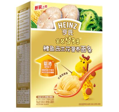 (图:亨氏面条之金装智多多鳕鱼西兰花营养面条)