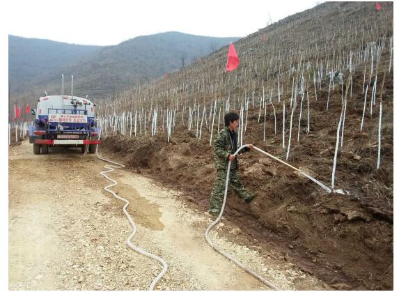 该公司响应国家石漠化治理和桐柏县淮河源头生态建设号召,创新机制,流转桐柏县淮源镇大栗树村集体石漠化荒山2400亩,远期规划流转5000亩,重点开展石漠化治理造林,推进淮河源头生态建设,为带动当地精准扶贫助力。该基地位于桐柏县淮源镇大栗树村境内,立地条件差,土层瘠薄,植被覆盖率低,属于典型的山区石漠化造林困难地。公司在各级政府及林业部门的指导下,自2016年7月份以来,邀请林业工程技术人员从规划布局、作业设计、技术方案、树种选择、整地规格、日常管护等方面按高标准、严要求,规范操作,保证造林质量。施工作业采用机械挖坑、投放熟土、客土造林、合理修剪、保证苗木根系完整、根部蘸浆以及浇水保苗、培土抚育保墒等工程措施相结合的方法,有效地提高了困难地的苗木造林成活率,确保造林质量。