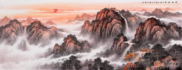 01)、五岳之首 王宁国画泰山作品《旭日东升》作品来源:易从网