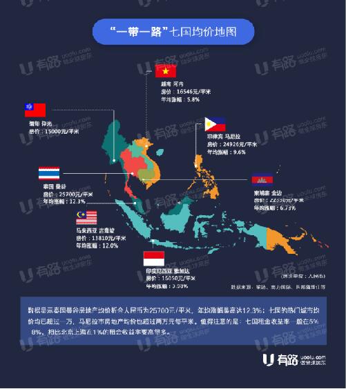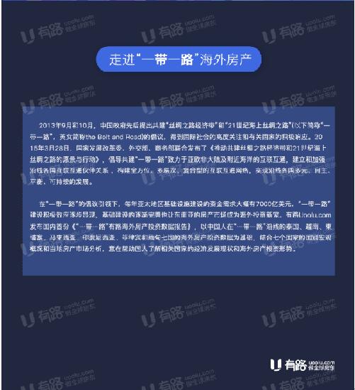 “一带一路”自2013年提出以来,得到了国际社会的高度认可和国家政策的积极响应,亚太地区的积极效应日益凸显,尤其在海外投资领域。有路以中国居民在“一带一路”沿线的泰国、越南、柬埔寨、马来西亚、印度尼西亚、菲律宾和缅甸七国的海外房产投资数据为基础,结合七个国家的国别宏观概况和当地房产市场分析,意在帮助国人了解相关国家的经济发展现状和海外房产投资形势。