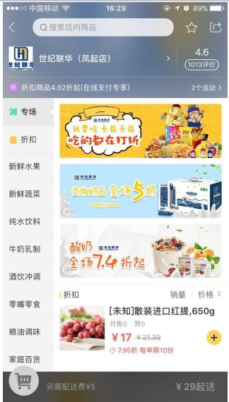 浙江世纪联华相关负责人介绍,“世纪联华的特价优惠活动一直很受消费喜爱,这次与美团外卖合作,我们也把招牌的特价活动在线上同步,特价品类包括生鲜果蔬、冷藏冷冻、零食饮料等多种优质商品。”据了解,线上线下共享的高密度促销活动是双方合作的一大特色,几乎每周都有全新的特价活动上线,此前举办的奶品5折、酸奶7.4折的优惠活动收获了消费者的热情反馈,近期双方正在合作的生鲜折扣也为消费者提供了49元减15元的优惠。