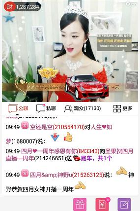 “谢谢墨攻的玫瑰”、“谢谢麦子老哥的香奈儿”、“谢谢潇洒三宝的跑车”……手机屏幕上的女孩,戴着银色的发箍,穿着红艳的一字裙,长发披肩,清纯可人,面对观众的礼物刷屏,她会念出网友的名字表示感谢,时不时微侧着脸,做出比心的可爱动作作为对观众热情的回应。直播仅开放几小时的时间,观众人数就已经达到了1万7千多人。