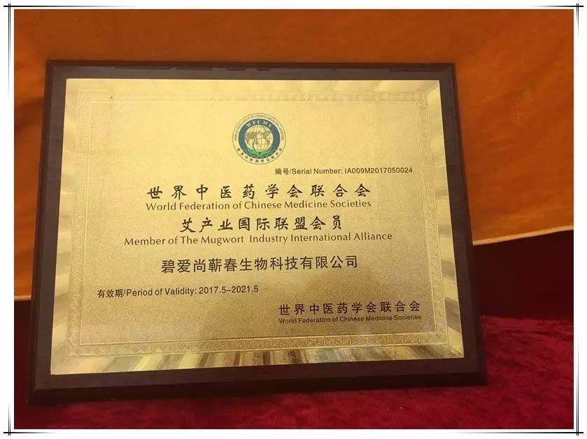 碧爱尚作为蕲艾产业发展的一份子,很荣幸受邀参与其中并成为“世界中医药学会联合会艾产业国际联盟”会员。