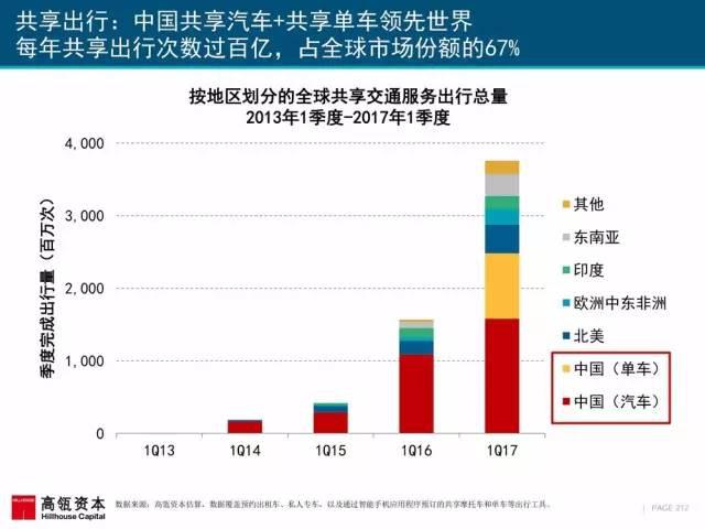 米克尔在报告中指出,在共享出行市场,中国已经走在世界前列。目前,中国每年共享出行次数已过百亿,占全球市场份额的67%。中国互联网已进入“在线娱乐和共享出行的黄金时代”,而摩拜单车正是共享出行行业的代表性品牌。