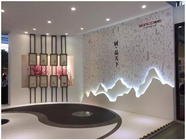 在此次2017上海国际厨卫展上,柏厨展馆的风格仍旧围绕着一直以来坚持的新中式路线;但与以往不同的是,本届展会柏厨更偏向年轻化。在展馆设计上摈弃了马头墙繁复设计,用现代建筑简易线条的表达方式勾勒传统中式元素;馆内也更多融入年轻一代消费群体喜爱的元素。