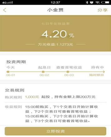 小金贯活期理财 | 4.2% | 75万元 | 31500 |