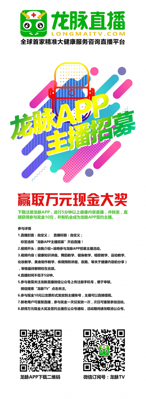 为进一步提升品牌知名度和影响力,丰富平台内容,龙脉直播特开展有奖招聘活动。在这里,无论你是混迹于哪个行业,不管你是行业精英,还是入门小白,只要你有一颗热衷于健康的心,只要你有足够惊艳的技能,或是丰富的经验,那么就可以参与到我们此次的活动中来。