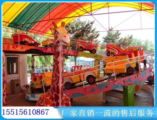 配有五彩缤纷的彩灯、音响及儿童卡通画装饰,车辆列队行进在盘旋升降的轨道上,让孩子们体会翻山越岭和飞越时空的感觉,够刺激又无恐慌感,使人身临其境,赏心悦目,深受儿童喜爱。