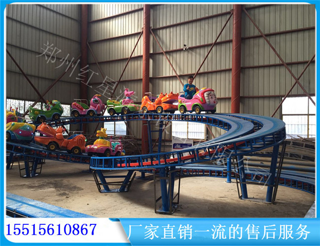 立环跑车”游艺机,又称迷你穿梭,是一款在专用的立交式轨道上行驶的新型游乐设备,它由16辆各种款式造型精美、风格各异的跑车组成的浩荡车队,各自驱动同步行驶的车辆组成。配有五彩缤纷的彩灯、音响及儿童卡通画装饰,车辆列队行进在盘旋升降的轨道上,让孩子们体会翻山越岭和飞跃时空的感觉,够刺激又无恐慌感,使人身临其境,赏心悦目,深受儿童喜爱。
