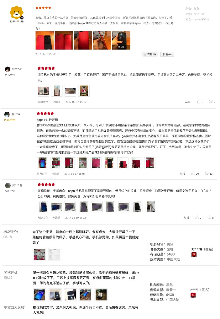 下面小编截取了各大购物平台的评价,让我们看一看用户对OPPO R11的哪些方面赞赏有加。