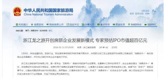 与会专家高度认可龙之游的“消费资本+”运营模式,专家意见认为这是一个融合了互联网、经济、金融、旅游等方面的全新的模式,必定会引领以房车为代表的高端休旅行业的发展。而龙之游的创始人及创始团队的创新精神和高效执行力将有力推动该项目的发展。专家预估,龙之游IPO时,企业市值或将达到100亿元人民币以上。国家旅游局、中国网等媒体纷纷报道或转载。