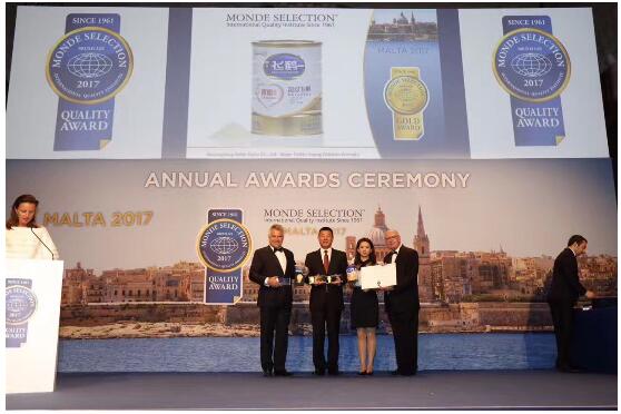 2017年5月29日,在马耳他首都瓦莱塔举行的“世界食品品质评鉴大会”2017年度颁奖典礼上,飞鹤乳业旗下高端婴幼儿奶粉“星飞帆”再一次蝉联大会金奖。