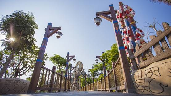 方特水上乐园是以饱含东南亚风格的丛林文化为主基调打造,园区内随处可见各式各样风格奇异的东南亚建筑,夸张的雕像和花纹,古老奇异的部落图腾无不透露出远古文明的神秘色彩,穿梭其间,仿佛跨越时间线来到了异度时空,重温曾经古老文明的独特魅力;除了东南亚风格的各色建筑外,园区内影影绰绰的热带丛林也是一大亮点。大型漂流项目懒人河长达上千米的河道环绕整个园区,河道两旁皆是茂密繁盛的热带植物,不时更能发现隐匿于其中的“野兽”;乘坐皮筏于河道上缓缓穿行,随着水流蜿蜒流淌于整个园区,沿途虫鸣鸟叫,奇花异果比比皆是,让人如同置身热带丛林,踏上探秘丛林之旅。
