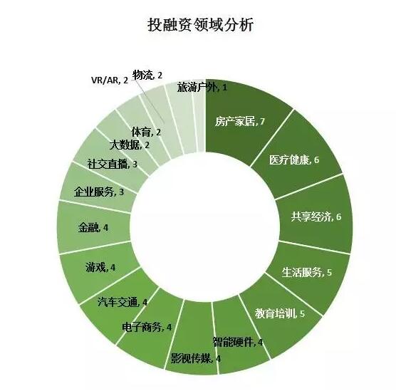 融资数量Top5:房产家居、医疗健康、共享经济、生活服务、教育培训;