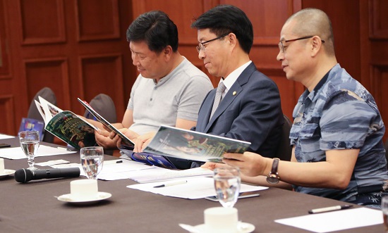 韩国国会议员赵正湜一行观看了解世贸联合基金总会过往15年历程
