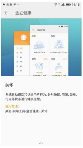 据了解,健康关怀功能是金立在Amigo 4.0系统中独有的功能,在使用手机的过程中,系统会自动识别和记录用户的行为,针对睡眠、用眼、颈椎、行走等状态进行健康管理。该功能附属于金立S10的金立健康功能中,注册金立用户ID后,在金立健康功能选项最下方,便可找到健康关怀。该功能界面简洁明了,分为睡眠、报告,颈椎、用眼四大板块,还可在界面下方开启就寝时间提醒与低头族提醒功能。