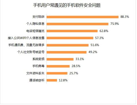 据了解,目前手机支付类APP成为了安全隐患的聚集地。据数据研究机构比达咨询(BDR)发布的《2017年第2季度手机安全APP市场研究报告》显示,中国手机安全APP用户常遇见的手机安全问题中,支付陷阱问题占比高达88.3%,排名第一。木马病毒、假冒APP借助众多的APP市场、论坛可谓无孔不入,而智能手机的APP仅是一个图标,用户无法从一个图标中看到该APP如何在后台运作,或许它正是木马伪造的,当我们输入了账户和密码,绑定了银行卡,钱财便会不翼而飞。