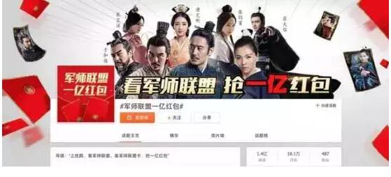 线上则充分发挥优酷生态打法的优势,联合UC浏览器、手机淘宝、支付宝、微博、淘票票等阿里系旗下资源,以开机图、banner位、PC端焦点头图等重要资源位的剧集主视觉及开播信息曝光展示,助力剧集开播。而集军师卡抢红包活动,则大大调动了网友的追剧兴趣。