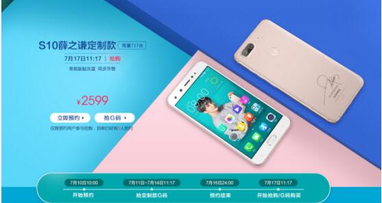 该机全球限量发售717台。尽管是限量定制机型,但金立并没有因此提价,金立S10薛之谦定制版的价格与普通版一致,均为2599元。消费者在10日上午10点就可以前往金立商城与京东金立手机旗舰店进行0元预约,并可在11日到14日上午11点17分于金立商城抢购G码,提前锁定购买名额,该机将在7月17日上午11点17分正式开售。