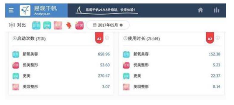 通过易观千帆的数据不难看出,新氧美容APP不论是从启动次数和使用时长都远远领先业内其他APP,启动次数和使用时长则说明用户的使用频率和粉丝粘性都相对较高。新氧借此打造了一个数千万计的医美社区,这也说明选择美容整形的手机客户端用户正在成为更便捷的方式。作为垂直的APP和社区,新氧正在变成一个入口级的平台,圈定更加精准用户。