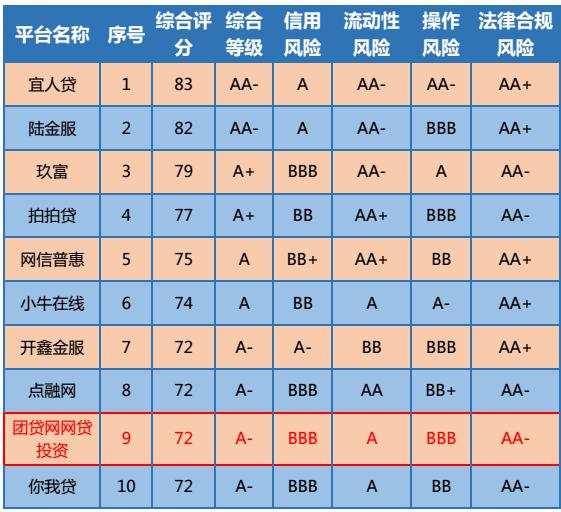 ▲图为《报告》中互联网金融TOP10平台,标红部分为团贷网网贷投资平台数据。