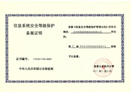 据了解,“国家信息系统安全等级保护三级备案”认证,主要从技术要求和管理要求两大方面提出了包含信息保护、安全审计、通信保密等在内的近300项要求。平台只有在完成定级、备案、安全建设和整改、信息安全等级测评、信息安全检查等严格的审查工作后,才能通过该项认证。