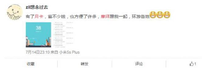 值得一提的是,为了让用户的骑行体验更舒适,新款摩拜单车在车座和车筐的设计上都运用了人体工程学。车座配备“气动升降”系统,简单的用手指扳动即可调整车座的高度,新款单车的车筐储物能力强。摩拜之前推出的月卡也获得不少网友的称赞,有网友称:有了月卡,省不少钱,也方便了许多,摩拜跟我一起,环游各地。