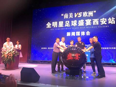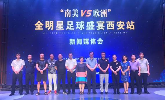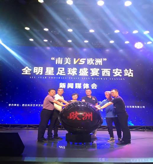 2017.8.23“南美VS欧洲”全明星足球盛宴西安站新闻媒体会是由陕西省体育局和陕西省足球协会共同主办,陕西鸿帆置业投资发展有限公司、西安肖芬文化艺术传媒有限公司、陕西潘多拉影视传媒有限公司、华讯时讯北京文化传媒有限公司联合承办。发布会首先在主办方介绍了赛事情况后,与会领导嘉宾和主承办方代表分别致辞讲话,发言后举办了媒体提问,就关心的赛事情况和球迷关心的问题,承办方一一做了回答。足球作为世界上最受欢迎的体育项目之一,无论从经济学还是从社会学的角度看,都有着超出运动本身的意义。陕西西安作为丝绸之路的新起点和“一带一路”的核心区,正搭乘着经济发展与世界接轨的快车,在世界发展蓝图上书写浓墨重彩的一笔。“南美对欧洲”全明星足球盛宴这一高端国际足球赛事在西安举办,是“一带一路”战略构想在足球和文化交流领域的具体实践,在提高西安足球外交领域影响力的同时,对提升古城文化形象,形成新的体育经济增长点,创造更多的商业价值,加快西安落实“一带一路”战略中体育旅游产业发展将产生积极的影响。