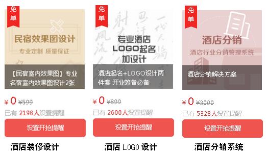 八月行业日,酒店专区,行业好货,整点抢!猪八戒八八节活动当天,酒店专区,一天八场10:00、12:00、14:00、16:00、18:00、20:00、21:00、22:00免单服务整点刷新,爆款产品来助力,千件服务等你挑!