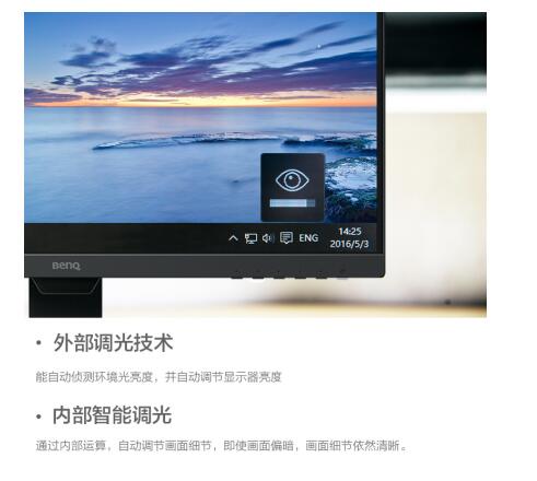 明基智慧爱眼显示器GW2780通过前置的智能传感器,每隔0.02秒侦测一次环境光亮度,并让显示器的屏幕亮度随着环境光照强度自动调整到舒适的强度,呵护用户的双眼。另一方面,在调节屏幕亮度的同时,显示器通过内部算法自动优化画质,让明暗处的细节依旧清晰。