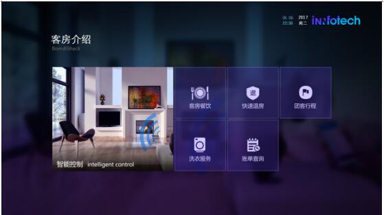 如果要获取宾客的饮食喜好、娱乐等行为习惯,这个智能化的终端就需要解决点餐、娱乐等功能。智驿酒店视讯系统集成服务平台通过与酒店管理系统PMS系统的对接,完成了客房点餐、SPA预定等功能,为酒店的数据收集提供技术终端与营销服务的双重保障。