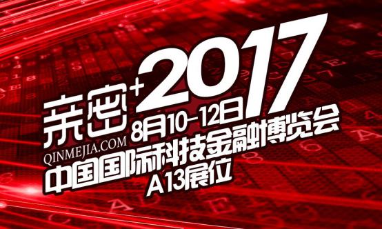 2017中国国际科技金融博览会暨第三届中国国际互联网+金融博览会(简称FinTech 2017)将于2017年8月10-12日在中国国际展览中心(静安庄馆)举办,“亲密+”凭借创新的科技金融理念将代表互联网金融行业参与本次博览会,与国内外知名的科技金融企业、行业专家和业内精英共同见证我国科技金融行业的创新、成长与未来。