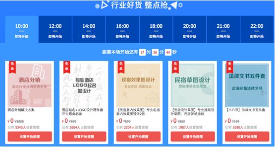 二、8月5日的农产品和教育行业日,登陆http://88.zbj.com/,进入教育行业分会场即可领取红包。购买服务可直接使用相应红包减免现金,满5000减500!满7000减1000!等,减免无上限,数量有限,先到先得!还有教育网站公众号开发、宣传单页设计等超值产品等你来抢购!农产品专区一天八场免单服务整点秒杀(10:00、12:00、14:00、16:00、18:00、20:00、21:00、22:00),上千件农产品行业优质服务0元抢购,只等你来!8月5日上午10点,农产品大咖教你十万元内,如何做大新牌!
