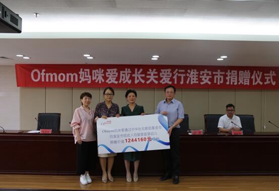 8月8日下午,由Ofmom妈咪爱发起的“成长关爱行”公益活动在淮安市社会福利院隆重举行。淮安市民政局局长邵明、淮安市妇联副主席祁素娟、中华社会救助基金会副秘书长、Ofmom妈咪爱企业代表纷纷出席了本次捐赠仪式。Ofmom妈咪爱现场捐赠了价值近125万元的爱心奶粉,以帮助改善淮安市贫困家庭孩子营养不良的状况。