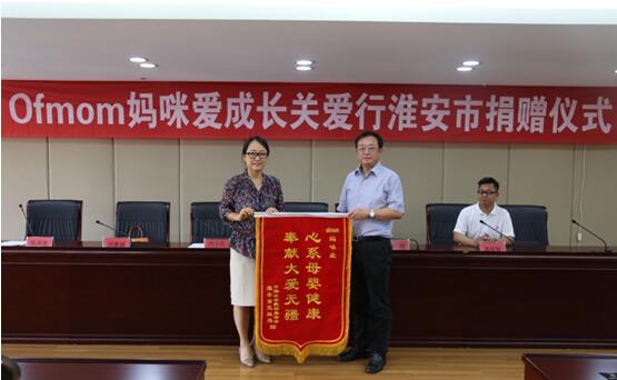 捐赠仪式上,淮安市民政局局长邵明向Ofmom妈咪爱颁发了锦旗,并对Ofmom妈咪爱的爱心善举致以谢意。中华社会救助基金会副秘书长张雪雁也表示:“基金会将全力配合此次捐赠活动,尽快将爱心奶粉送达至贫困家庭,同时也号召更多爱心企业能像Ofmom妈咪爱一样积极行动,投入到贫困地区的帮扶工作中,希望有更多受助婴幼儿能健康快乐的成长。”