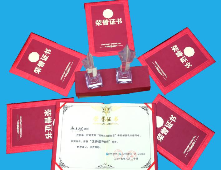 我校净晨旭老师、权卫波老师获得大赛的平面组优秀指导老师;刘小建老师、张雪妮老师获得大赛二维组的优秀指导老师;王国庆老师获得大赛三维组的优秀指导老师,荣耀之日,载誉归来!