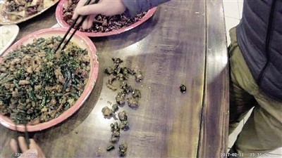 大家也开始怀疑起来,于是开始在盘子里找问题,"你们看,这算不算鸡爪,怎么有这么多个鸡爪。"王先生和朋友在他们所用的渣碟里,竟然找出了10个鸡爪的碎骨。虽然这些鸡爪被切碎,但可以明显的看出鸡爪的颜色都有几种。
