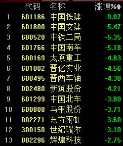 网易财经2月2日讯 高铁板块今日开盘走势不佳,截至发稿,板块平均跌3.37%。个股方面,中国铁建跌9.07%、中国交建跌5.47%、中铁二局跌5.35%、中国南车跌5.18%、太原重工跌4.83%、晋亿实业跌4.56%。