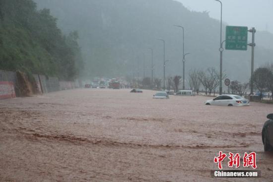 资料图:8月27日起,四川雅安市遭强降雨袭击,已致雅安境内多地受灾,车辆被洪水淹没。 四川雅安消防 供图