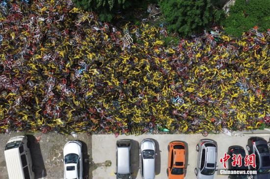资料图:堆积如山的共享单车。中新社记者 李进红 摄