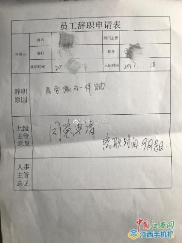 95后江西姑娘态度不好被批评 辞职信引发网友广泛讨论