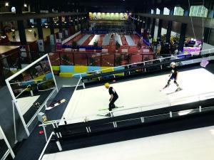 在园区滑雪场地内,市民正享受室内滑雪的乐趣。 老旧厂房“招徕”健身大咖
