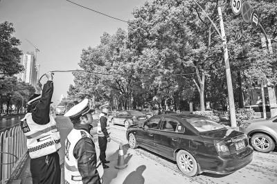 此处位于武钢医院正门口,车流量巨大,极易引发滞留。为了保证车流的顺畅,民警立马上前疏导交通,初步确定这根电线不带电,且未破皮还比较安全,民警和辅警们轮流将电线用胳膊高高举起,让车辆可以通行。