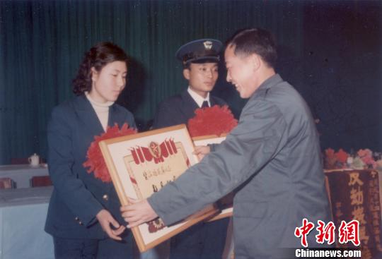 杨丽萍接受“中国民航英雄机组”授牌 徐宁 摄