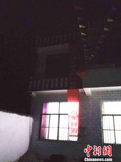 新人结婚现场悬挂的多面祝贺条幅。 图片来自微信朋友圈 摄
