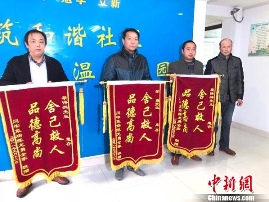 陈香怀代表全家人向热心救人的三名工人赠送锦旗。