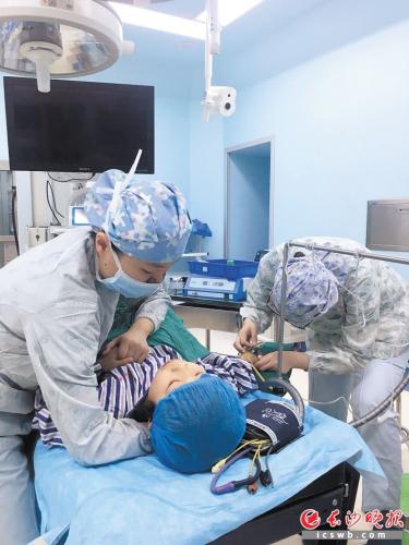 湖南省妇幼保健院麻醉手术室里,巡回护士用“手臂枕头”抚慰小患者。长沙晚报通讯员 韩旭 摄